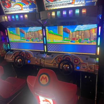 The third title, Mario Kart Arcade GP DX, drew inspiration from Mario Kart 7 in including hang gliders and underwater driving segments, and a co-op mode similar to Mario Kart Double Dash where two characters ride on a single vehicle, and the two players share control. The game also added a new set of courses themed around Namco Bandai's Taiko no Tatsujin series, and added its mascot, "Don-Chan", as a playable character.